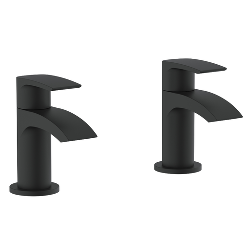 Cape Electroplated Tap Pair for 2 Tap Hole Basin w/ Pop Up Waste - Black