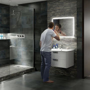Vega features LED colour temperature changing lighting and a charging socket, discreetly hidden behind the mirror front. The socket is suitable for your toothbrushes, shavers and trimmers. Vega is also fitted with a heated pad to reduce condensation on the glass surface.